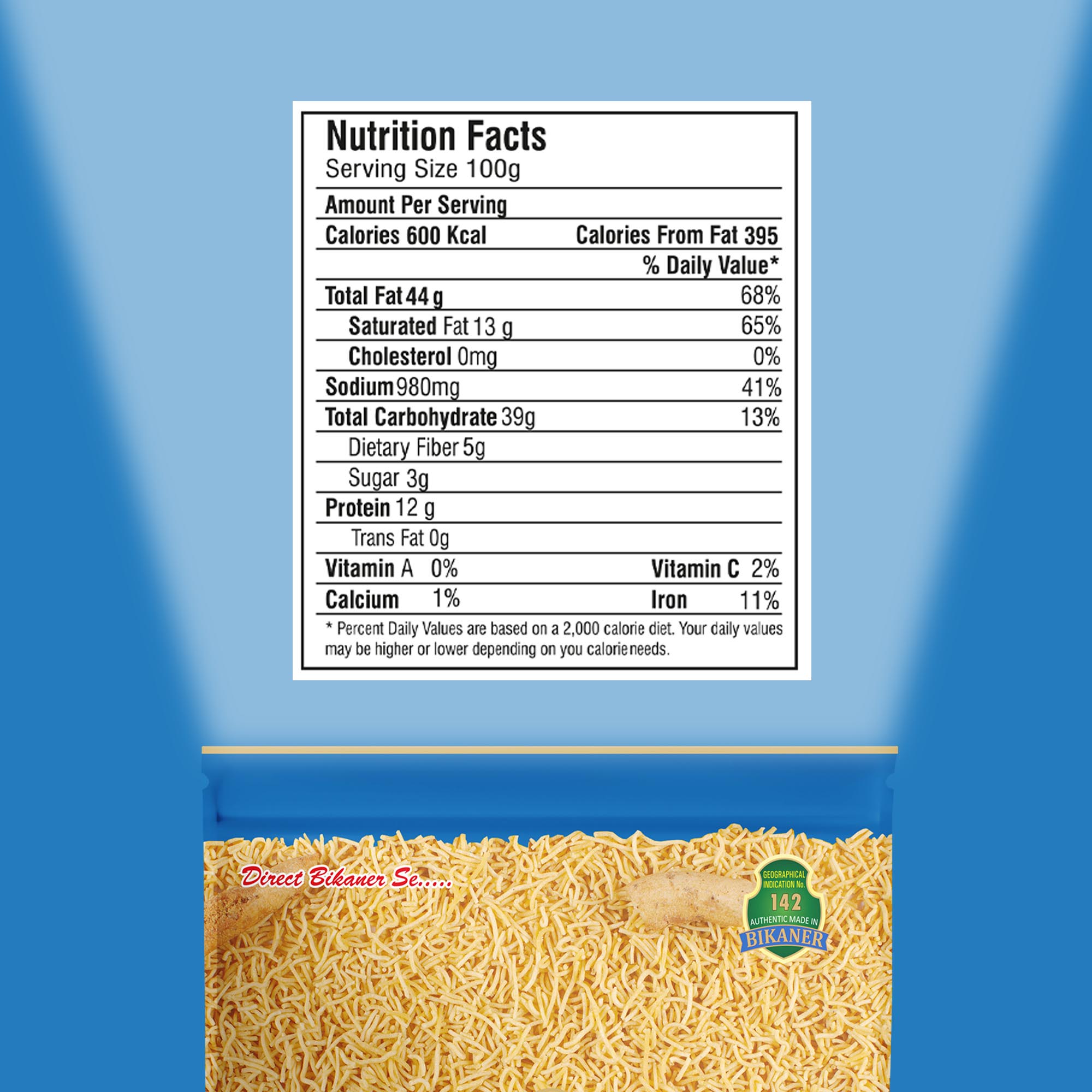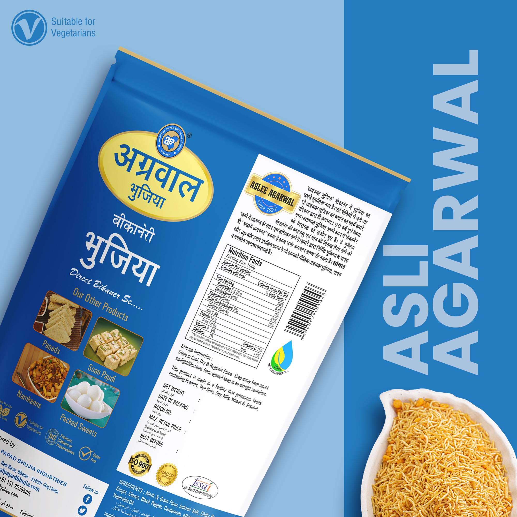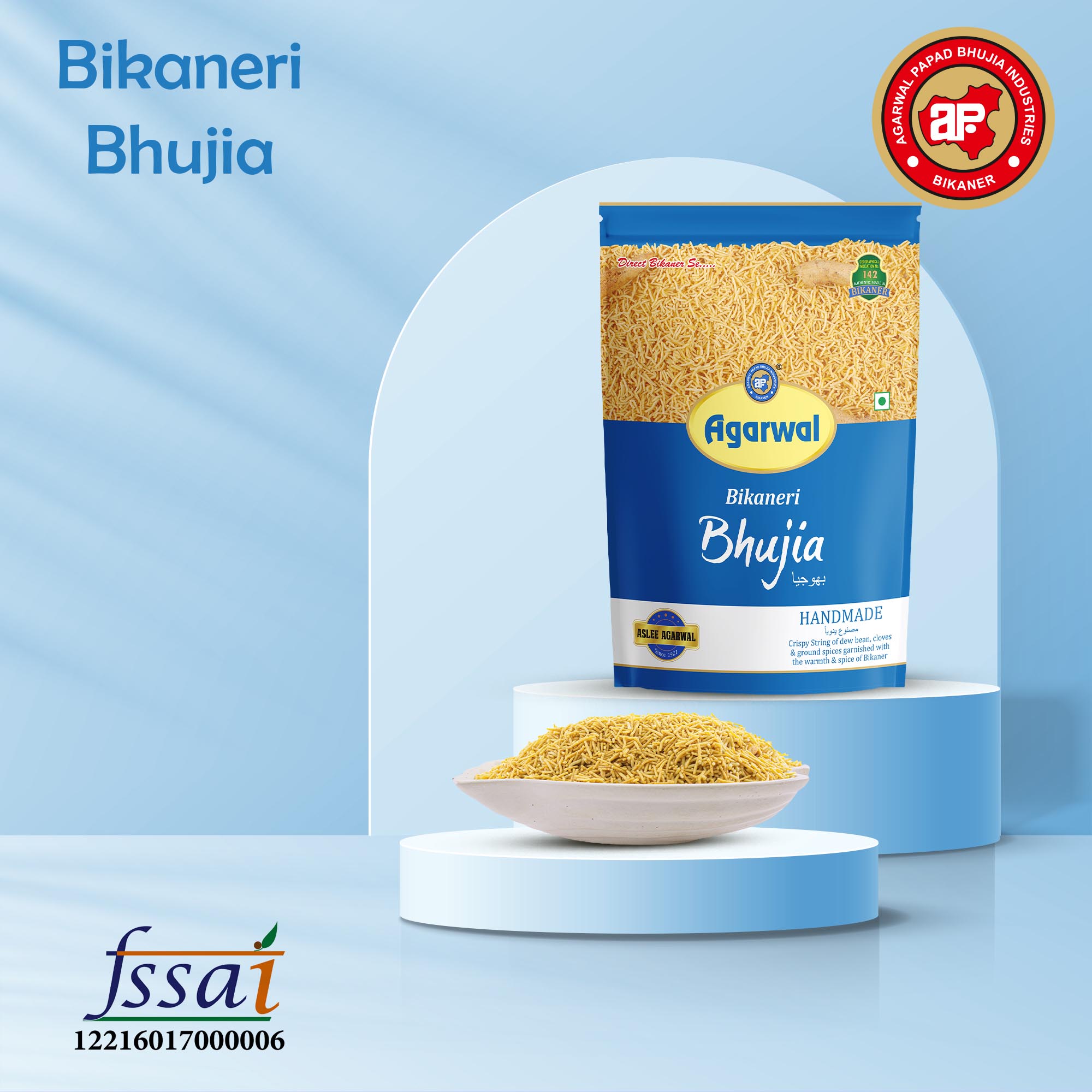 Discover the irresistible flavors of Bikaneri Sonal Bhujia by Agarwal Papad Bhujia Industries. Made with spicy moth & gram flour and a blend of authentic Indian spices, this ready-to-eat snack is a vegetarian delight. Indulge in the renowned taste of Bikaner’s famous food products with each crispy bite of this Bikaneri Bhujia. With no preservatives, it’s a guilt-free snack option that can be enjoyed any time of the day. Whether you’re looking for a spicy and flavorful Indian snack or a tea-time treat, Bikaneri Sonal Bhujia is the perfect choice. Experience the essence of Bikaner’s culinary heritage in this 100% vegetarian, spicy snack sensation.