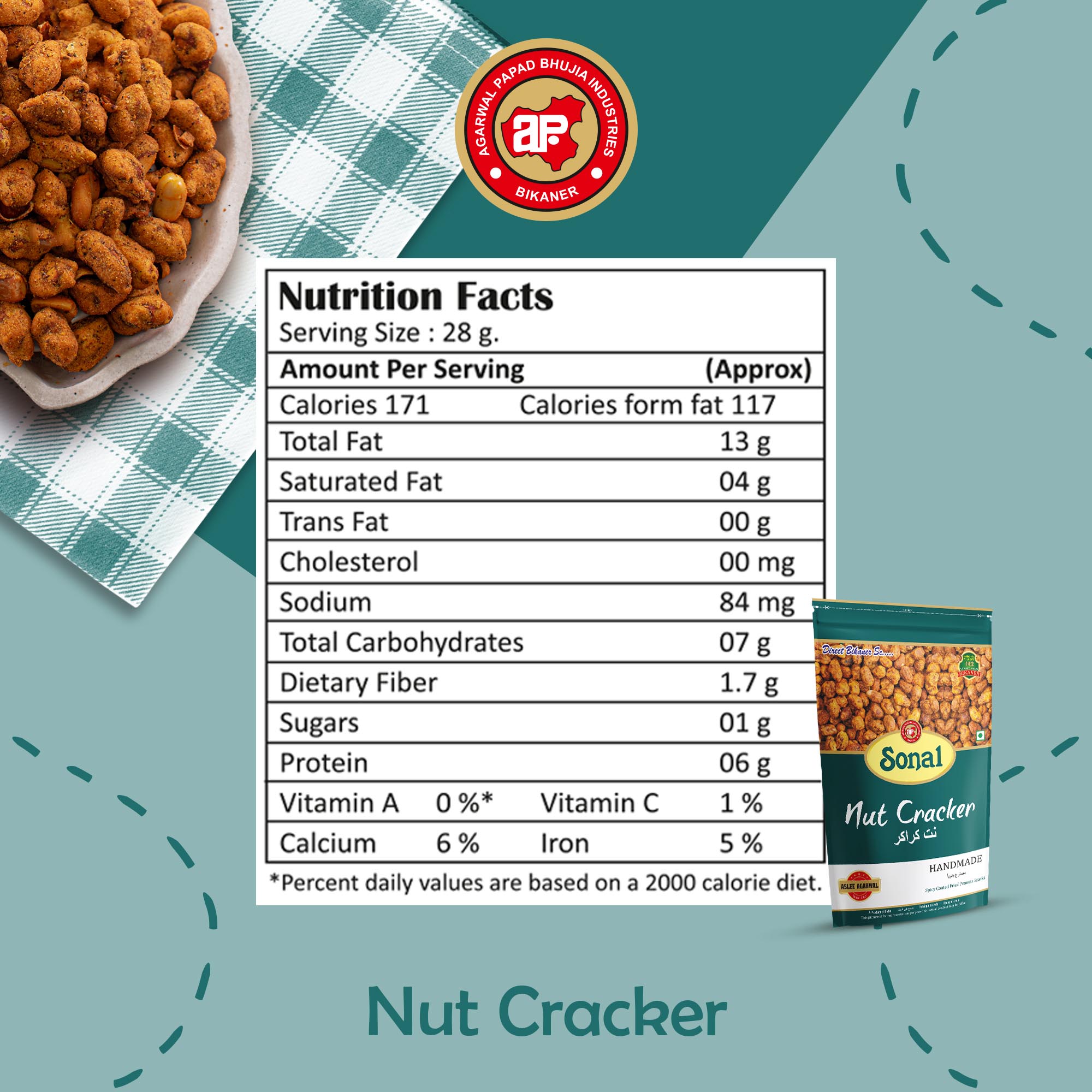 Indulge in the mouthwatering flavors of our Bikaneri Nut Cracker, a delightful Chakna Cracker that brings you the essence of Indian spices. Savor the crunchy goodness of nuts, including spicy peanuts, expertly infused with aromatic Indian spices. This coated peanut snack is a perfect choice for those craving a vegetarian and preservative-free treat. Each bite delivers a burst of tantalizing flavors, making it an ideal tea-time snack. Whether you’re hosting guests or simply looking to satisfy your snack cravings, our Bikaneri Nut Cracker promises a delicious experience that combines the richness of nuts with the boldness of Indian spices.